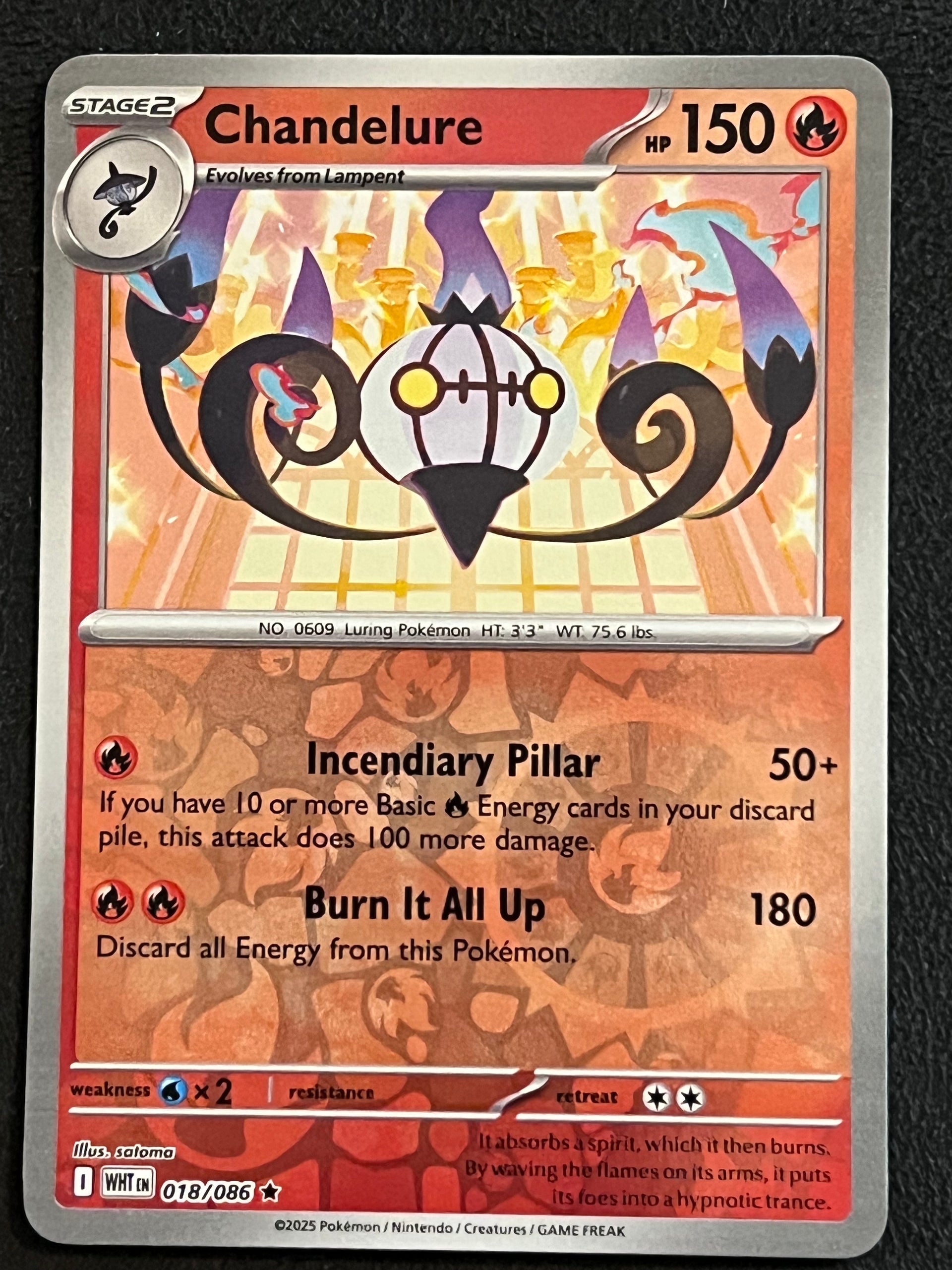 Unleash the eerie power of the Chandelure Holofoil from the White Flare Expansion. This striking card captures Chandelure’s ghostly flames in dazzling detail, making it a bold centerpiece for any collection or deck. Command the battlefield with a card that’s as daring as it is captivating.