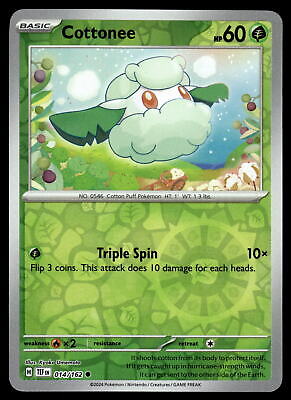 Near Mint 2024 Pokémon Cottonee Reverse Holo – Temporal Forces #014/162 | Basic Grass-Type TCG Card