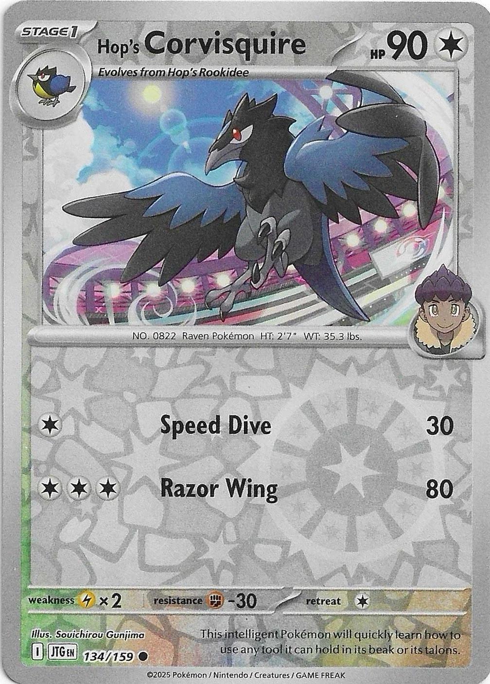 Hop's Corvisquire Reverse Holofoil from the Journey Together set offers collectors and players a striking card featuring dynamic reverse holofoil artwork. This card highlights Hop’s Corvisquire with enhanced visual appeal, making it a valuable addition for enthusiasts seeking both aesthetic quality and gameplay potential. Ideal for competitive decks or display, it combines rarity with a polished finish that stands out in any collection.
