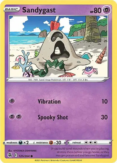 Discover the Sandygast Pokémon card from the Fusion Strike series, a refined addition for collectors and enthusiasts alike. This card showcases Sandygast’s unique abilities and strategic potential, making it a valuable asset for competitive play or display. Elevate your collection with this elegant piece that combines both aesthetic appeal and gameplay functionality.