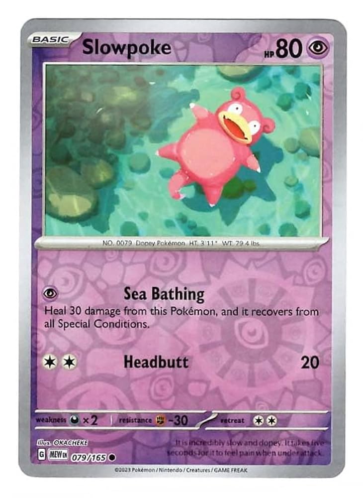 The Slowpoke Reverse Holofoil from the Scarlet & Violet 151 set offers collectors a striking blend of rarity and visual appeal. Featuring a shimmering holofoil background that highlights Slowpoke’s playful design, this card is a valuable addition for enthusiasts seeking to enhance their Pokémon collection with a unique and expertly crafted piece. Ideal for both display and competitive play, it embodies the charm and strategy of the Scarlet & Violet series.